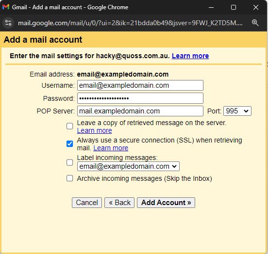 | mail.exampledomain.com | put a “mail.” before your actual domain name |